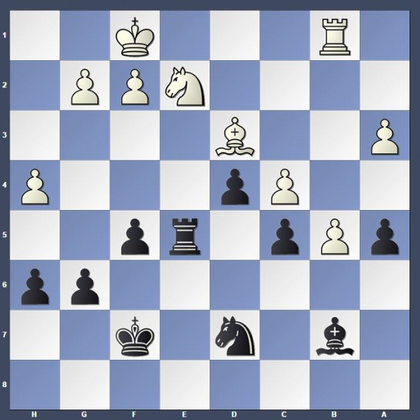 In dieser Stellung ist es für Weiß nicht ganz leicht, eine konstruktive Antwort auf den schwarzen Plan zu finden, der im Wesentlichen aus Sb6, Lc8-e6 (oder auch Le4!?) und g5 besteht. In der Partie spielte der gegnerische Spieler leichtsinnig 29.g3?, was einen entscheidenden Fehler darstellt. Weiß hätte unbedingt 29.a4! machen müssen und nach 29...Sb6 30.Sc1! um mit Sb3 zum Gegenangriff übergehen zu können. Nach 30...Le4 31.f3 Lxd3+ 32.Sxd3 wäre die Stellung wieder ausgeglichen. Stattdessen sah Weiß die Gefahr mit g2-g3 nicht kommen und Tamás setzte stark mit 29...Sb6 30.Tb2 Le4 31.Sc1 Lf3! fort und nach 32.Sb3 kam einfach 32...a4! und Schwarz hat gewinnbringenden Vorteil. Dieser wurde von Tamás sicher verwertet, 2-2.