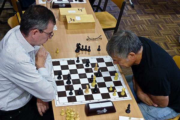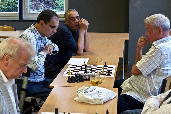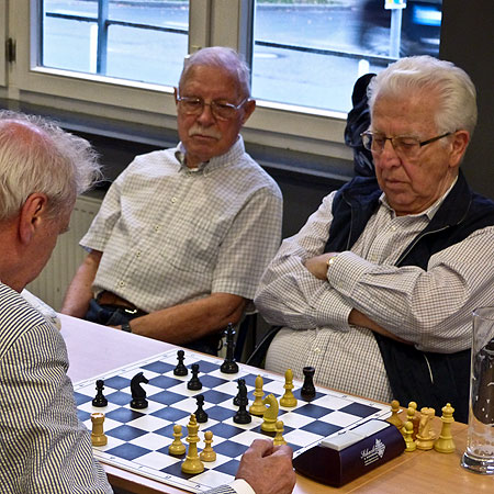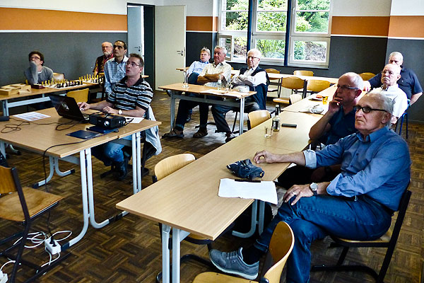 Volker Gassmann stellte zum Abschluss der diesjährigen Sommerschach-Reihe erneut die Vorstoßvariante von Caro-Kann in den Mittelpunkt, und zwar die Tal-Variante 1.e4 c6 2.d4 d5 3.e5 Lf5 4.h4!?, die dem Exweltmeister Michail Tal in seinem WM-Kampf gegen Botwinnik zwar kein Glück brachte, aber dennoch bis heute seinen Namen trägt. Am besten präpariert war diesmal aber der Vortragende, der das Turnier mit 4,5 Punkten vor dem erneut starken Martin Villwock (4) gewann.