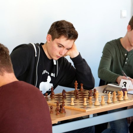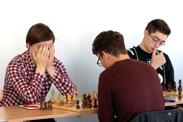 Kurz darauf gewann Tim auf Zeit und Nikitas Gegner, der zunächst ohne genügend Kompensation eine Figur für zwei Bauern geopfert hatte, verlor eine weitere Figur und gab wenig später auf: 2 : 2 Ausgleich.