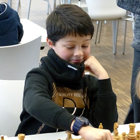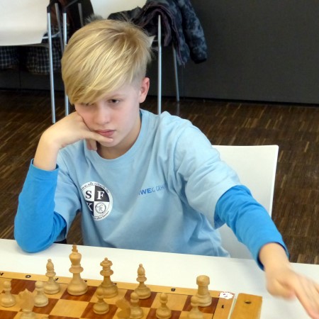 Gegenüber dem letzten Jahr, als die Mannschaft in nahezu gleicher Besetzung mit dem fast peinlichen 4. Platz hinter Dortmund Brackel 1, 2 und 3 ganz knapp den Sprung zur NRW-Meisterschaft schaffte, zeigten sich alle Spieler deutlich verbessert: Der Verbandsmeister Noel rückte ans Spitzenbrett und überzeugte mit 6,5:0,5 Punkten, wenngleich ihm in der ein oder anderen Partie das Glück des Tuchtigen zur Seite stand. Isabel spielte deutlich sicherer als im Vorjahr, kam nie in Zeitnot und überzeugte mit 6:1 Zählern. Luca war für das 3. Brett eindeutig zu stark, geriet nie in Bedrängnis und sah immer einen Tick weiter als der Gegner: 7:0. Neu ins Team rückte Justin, der seine ansteigende Form der letzten Monate auch heute unter Beweis stellte und ausgezeichnete 5:2 Punkte zum Erfolg beisteuerte.