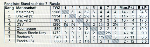 - Ein Wackler gegen Bochum: Isabel und Luca sorgen für ein schnelles 2:0, dann siegt auch Justin, dessen Gegnerin mehrfach den Gewinn verpasst und sogar ein einzügiges Matt auslässt. Schließlich gewinnt auch Noel im Endspiel mit Minusqualität: 4:0.